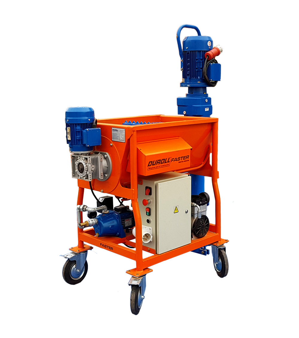 PY -150 es un pulverizador mezclador a tornillo sin fin  para todos los morteros y emplastos listos para mezclar, con mayor eficiencia y flexibilidad. Gracias a su diseño ergonómico, el PY-150, es una maquina totalmente automática ideal para una amplia gama de aplicaciones de revoques de yeso, cal-cemento y enduidos aislantes. Su tamaño permite que este equipo sea ideal para trabajar en espacios reducidos.